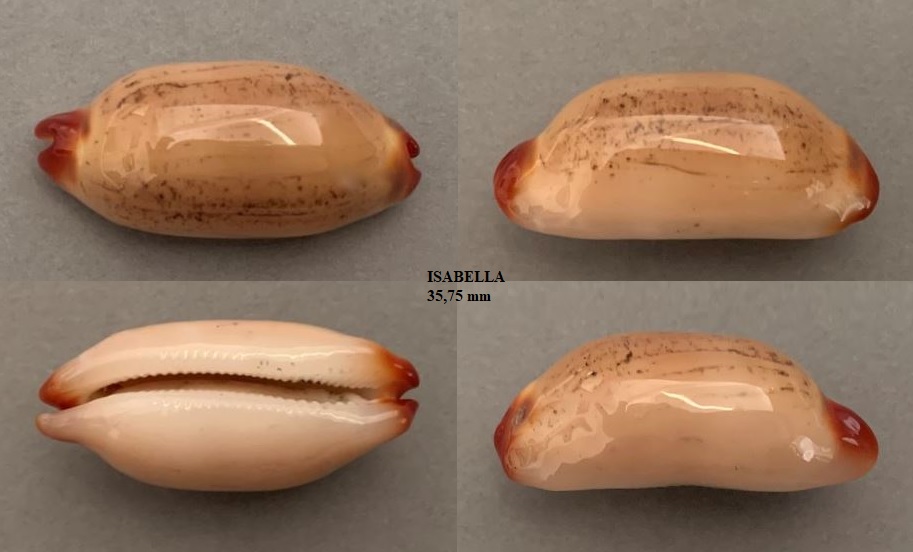 ISABELLA Taille : 35,75 mm Découverte : Année 1988 Provenance : Nouvelle-Calédonie Sud-Ouest, Prony, Baie Nord, Choux-Fleurs Propriétaire : ALIGHIERI William (Collection privée) Disponibilité : Indisponible |
